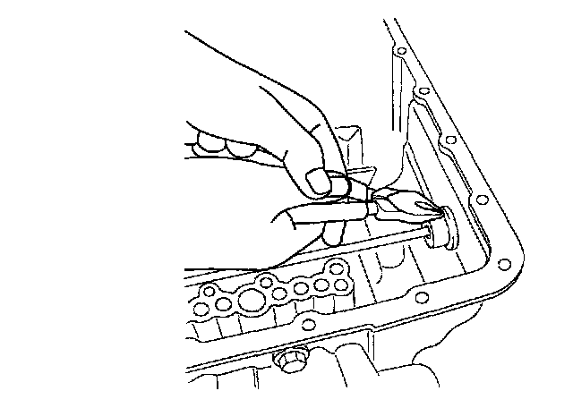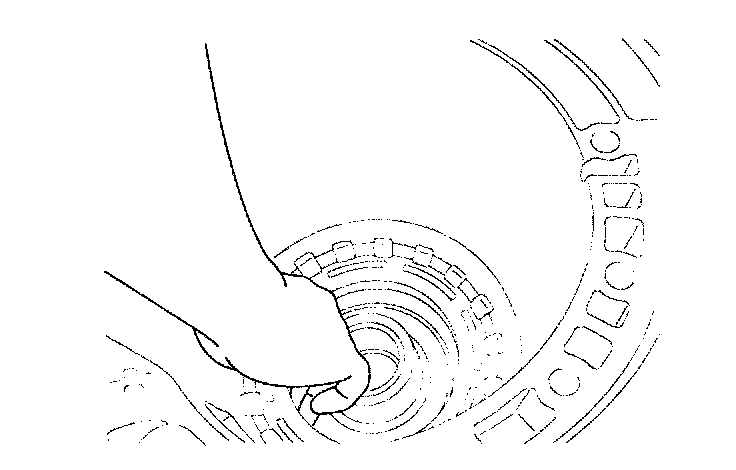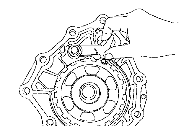 Press and pull out the snap ring through the slit of the oil pan side of the case, then pull out it once again with the first driver.