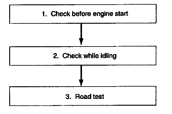^ Test all inspection items until the symptom is uncovered. Diagnosis for items marked as NG will be done at the end of road test.