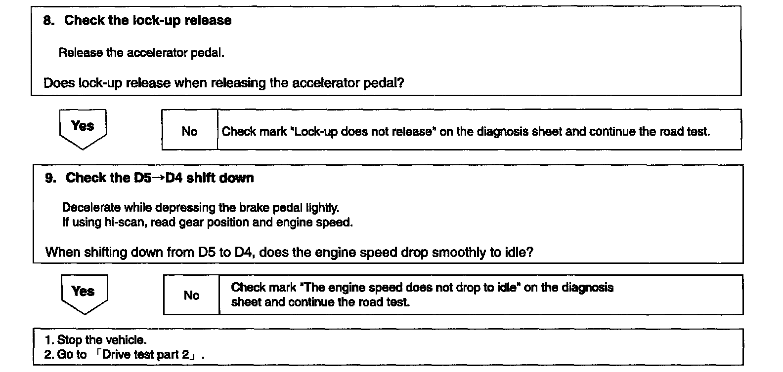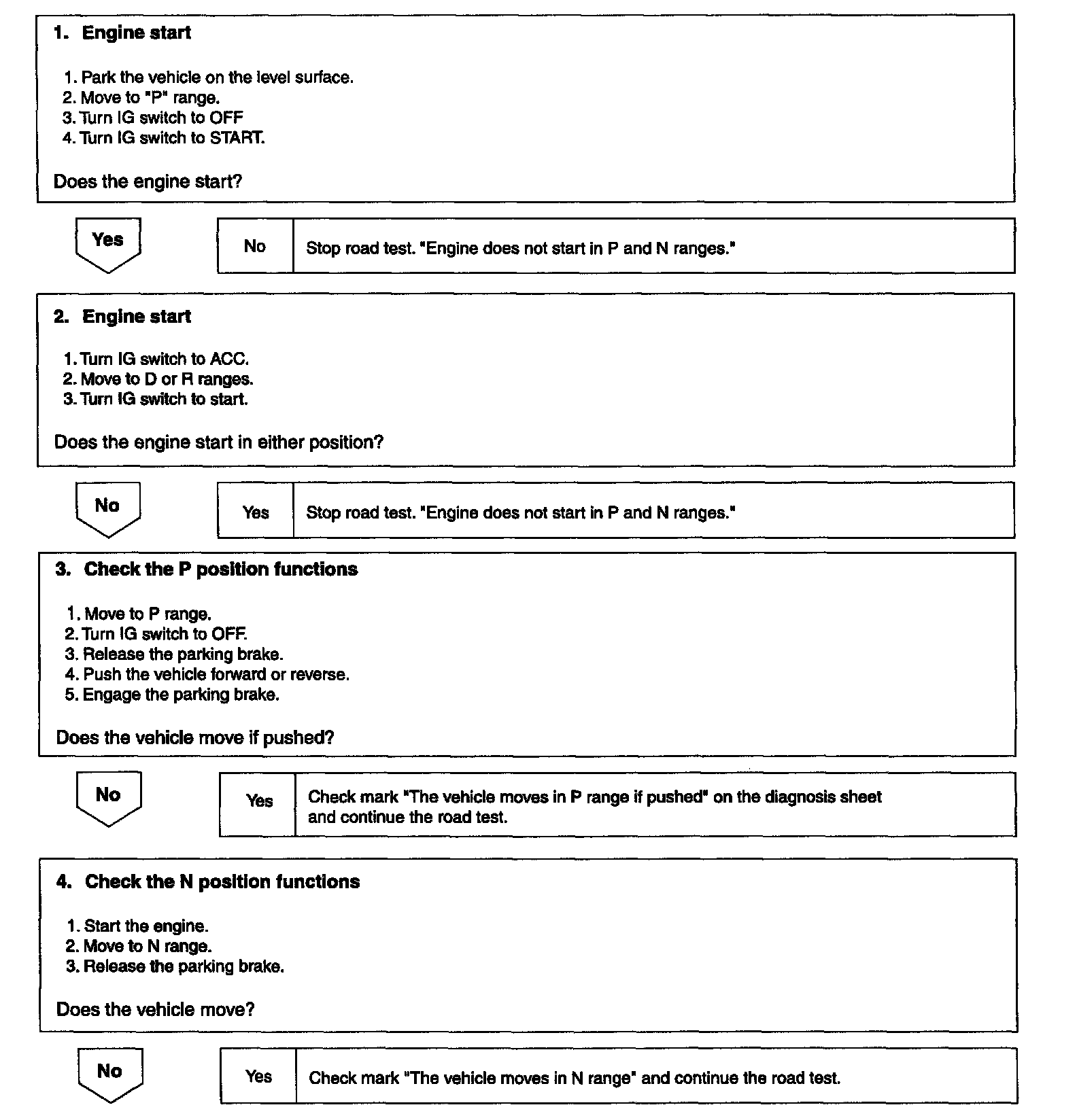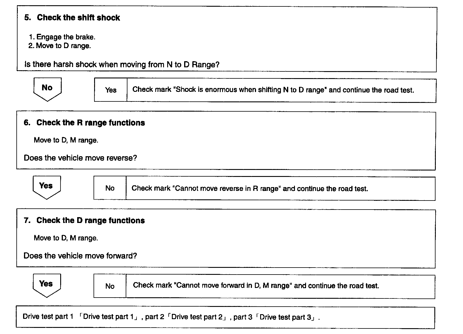 ^ Check test procedures and inspection items before starting road test.