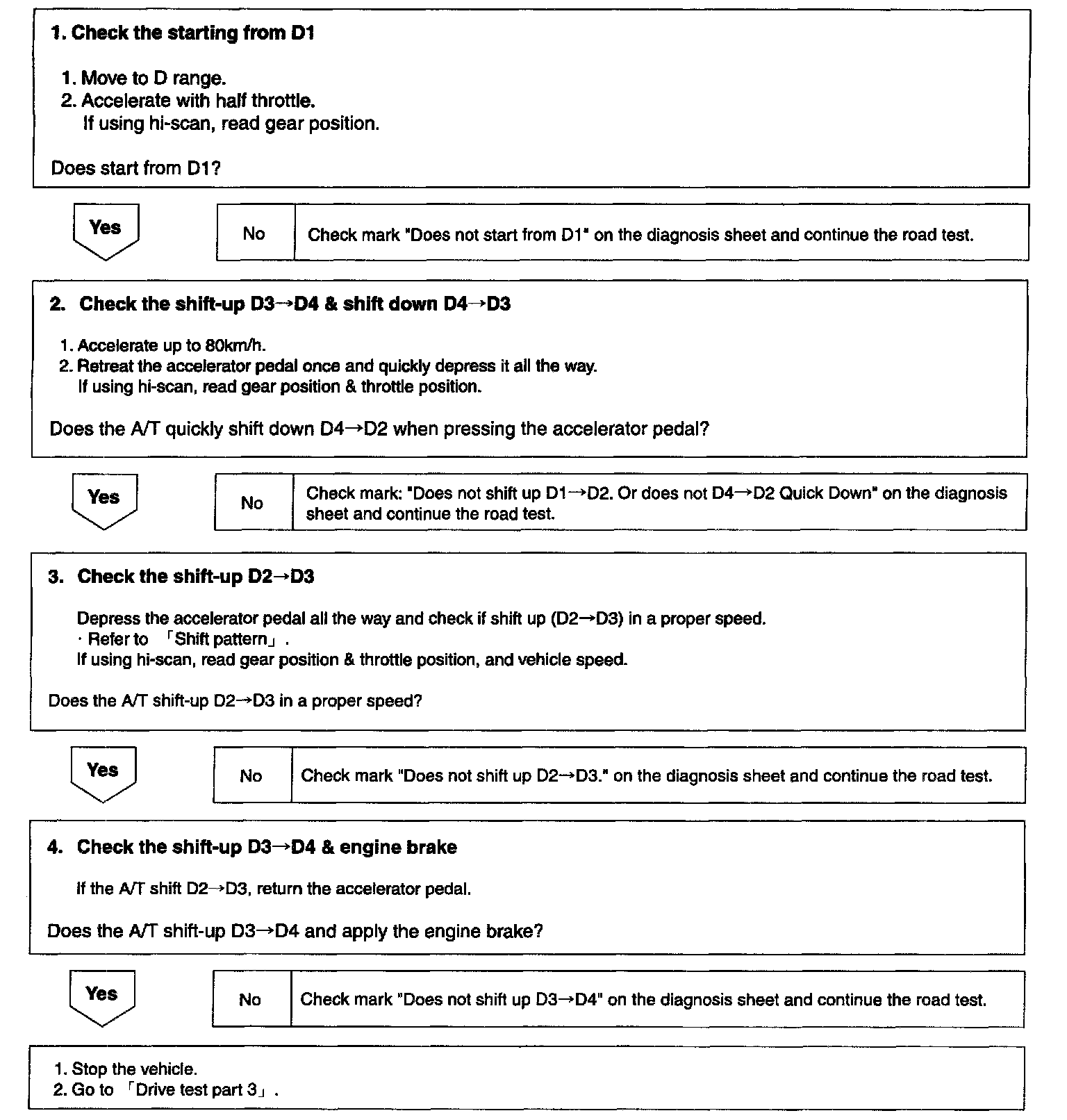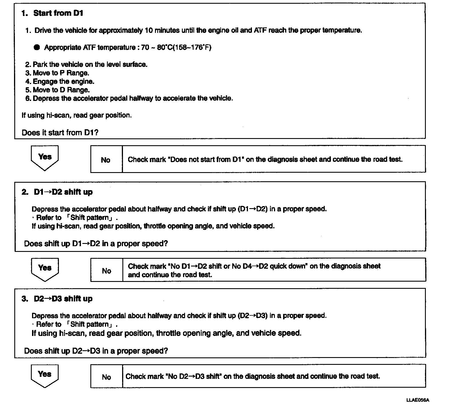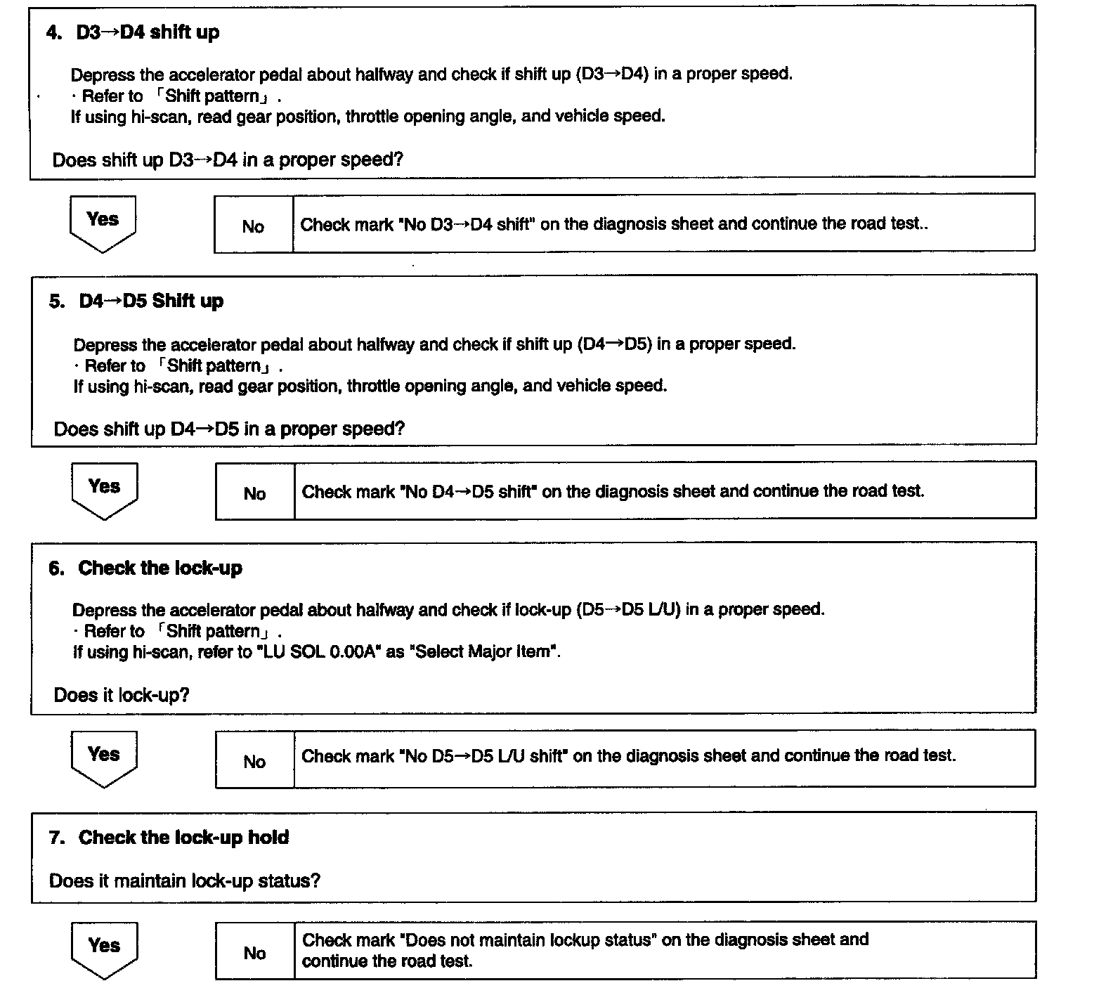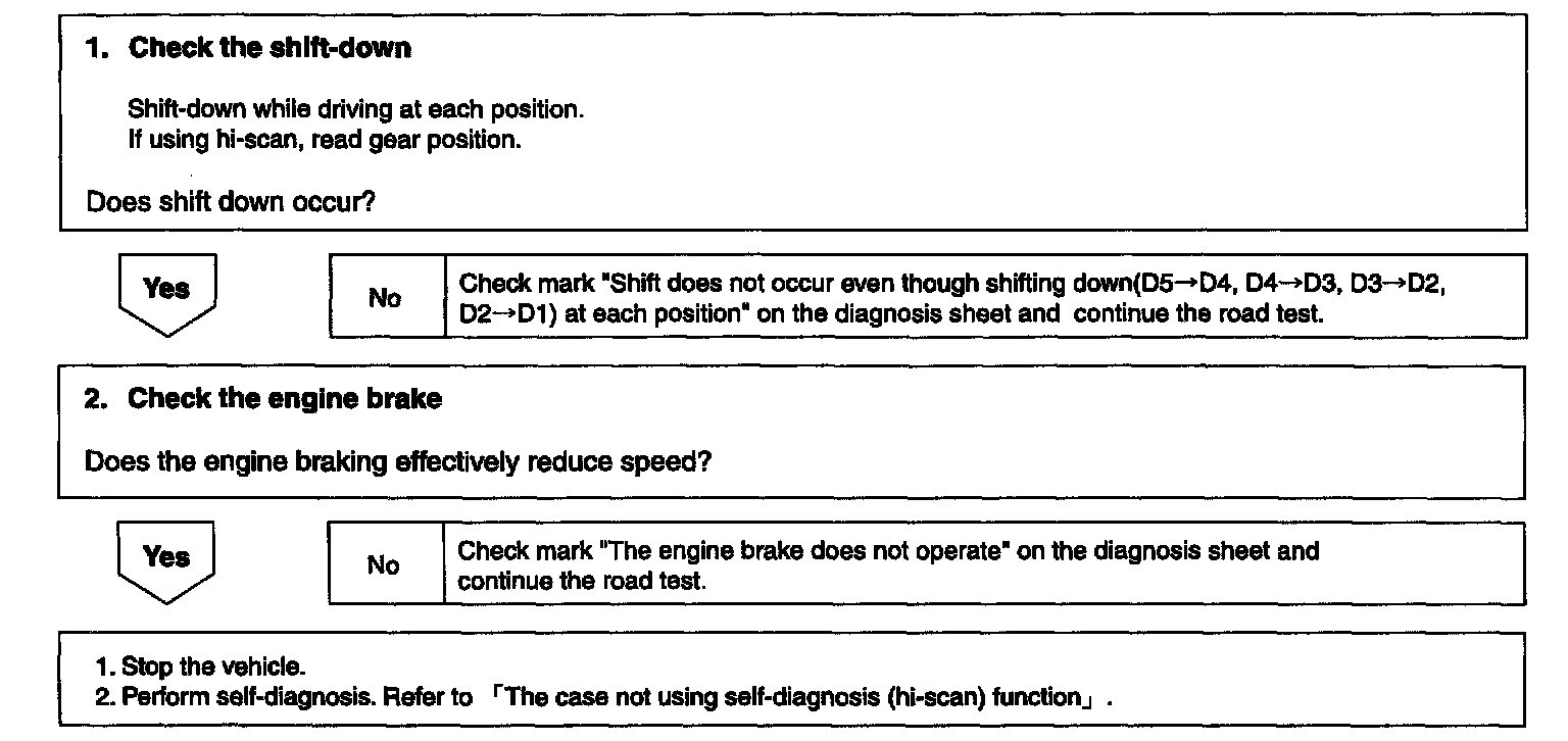 ^ Check the A/T performance thoroughly during road test and analyze the cause of trouble.