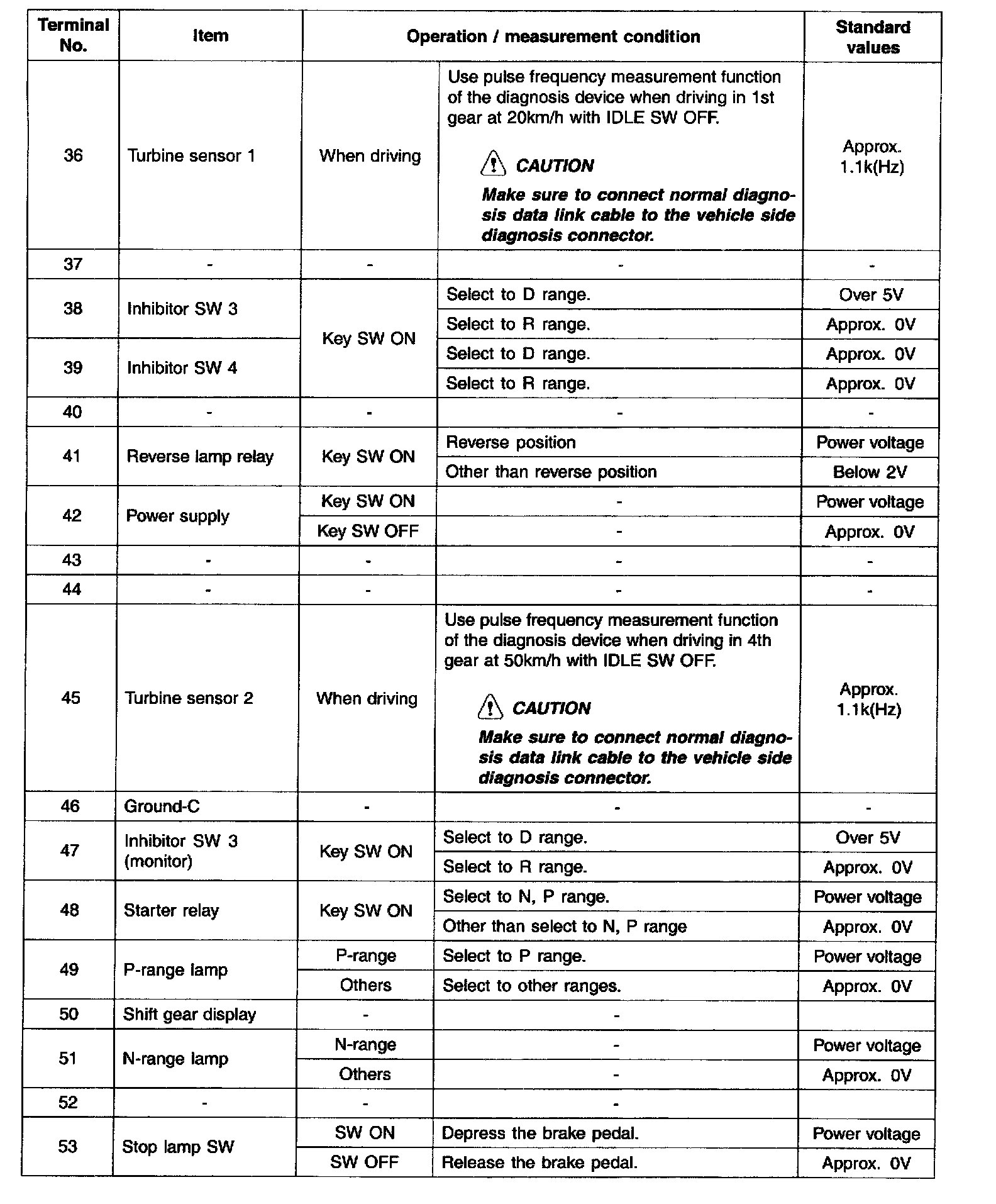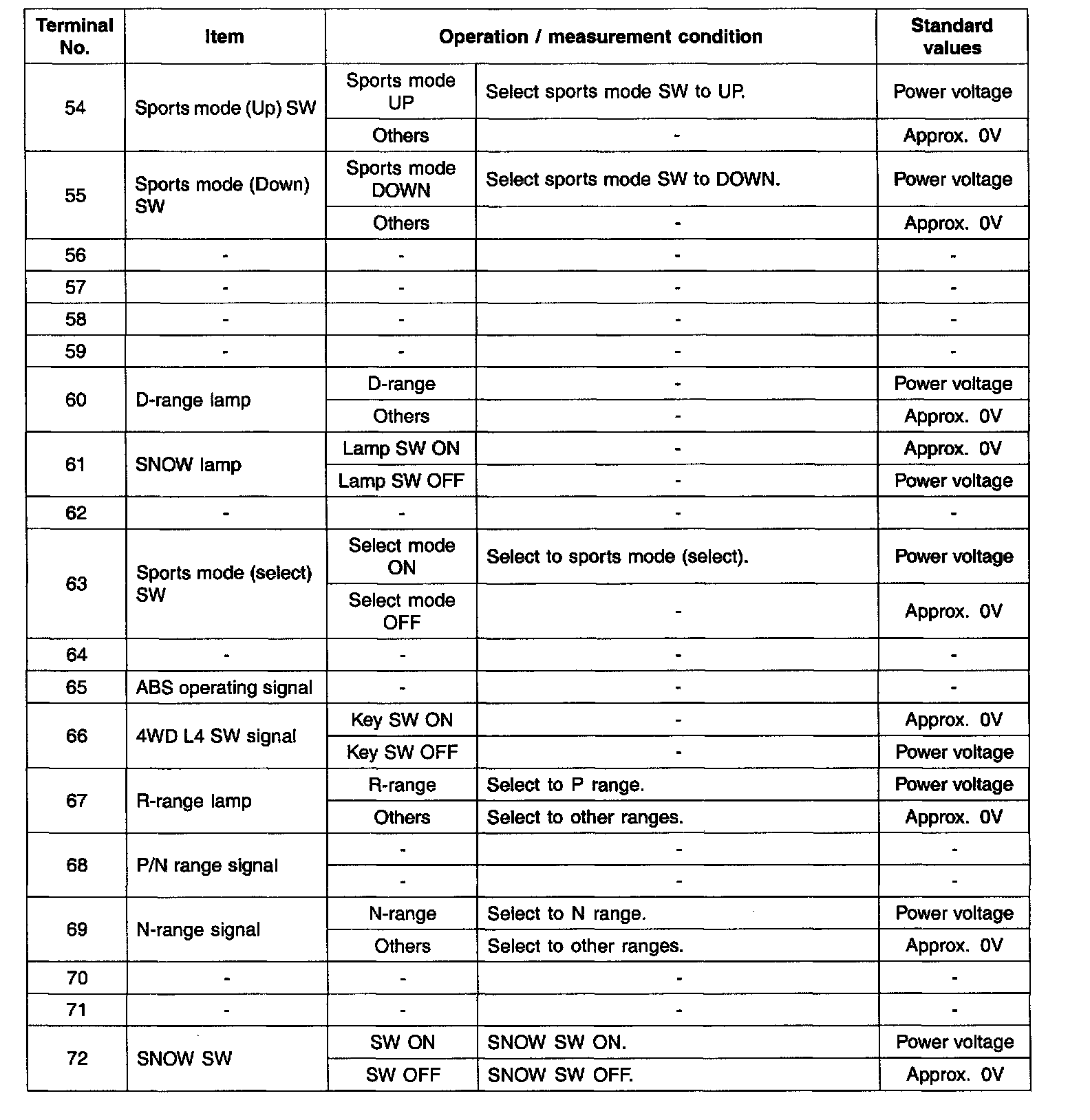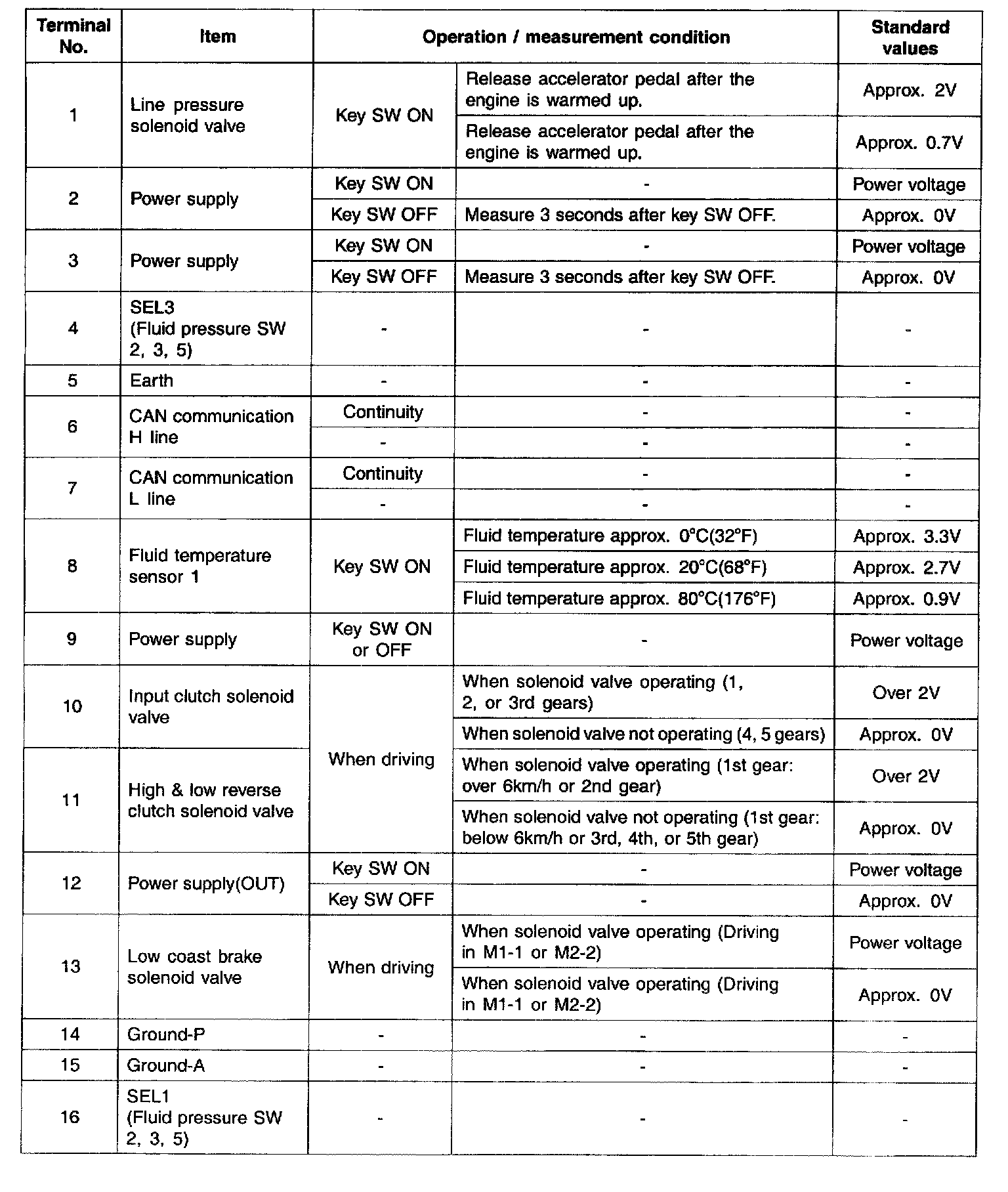 INPUT/OUTPUT TERMINAL VOLTAGE TABLE
