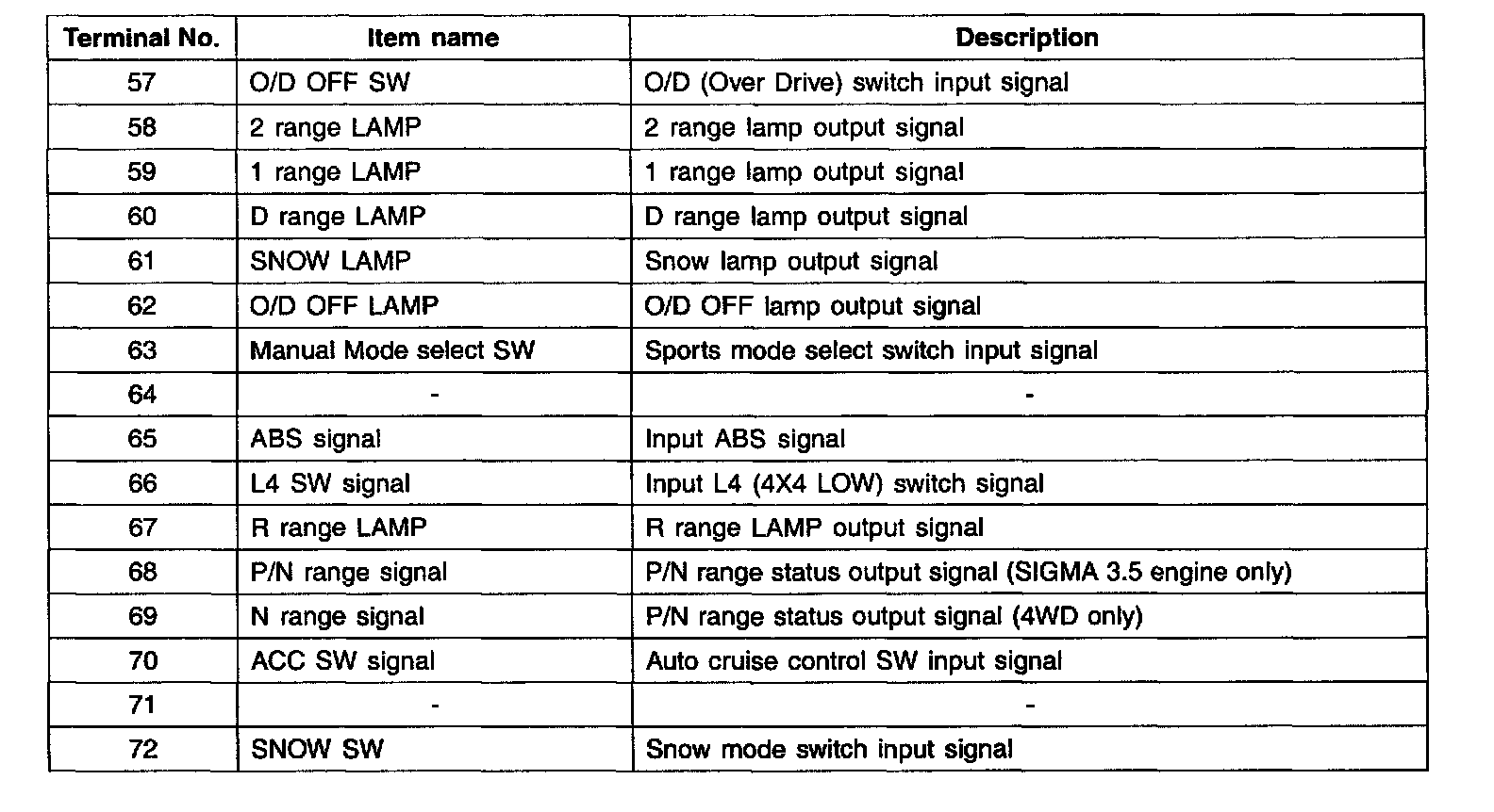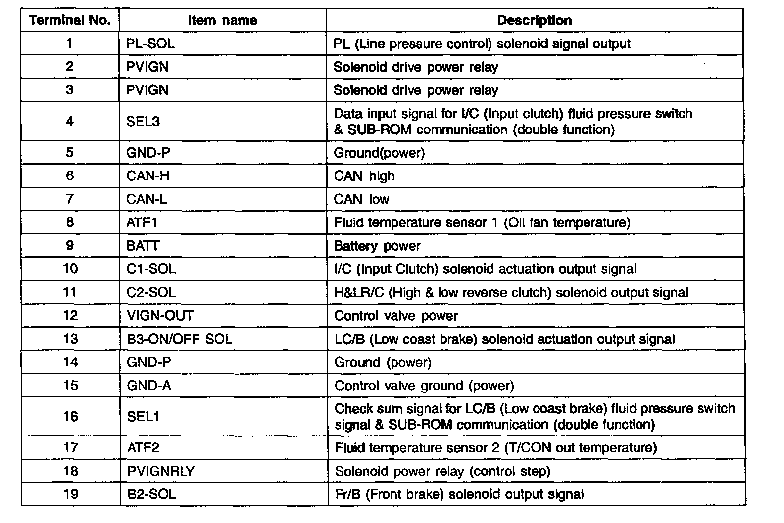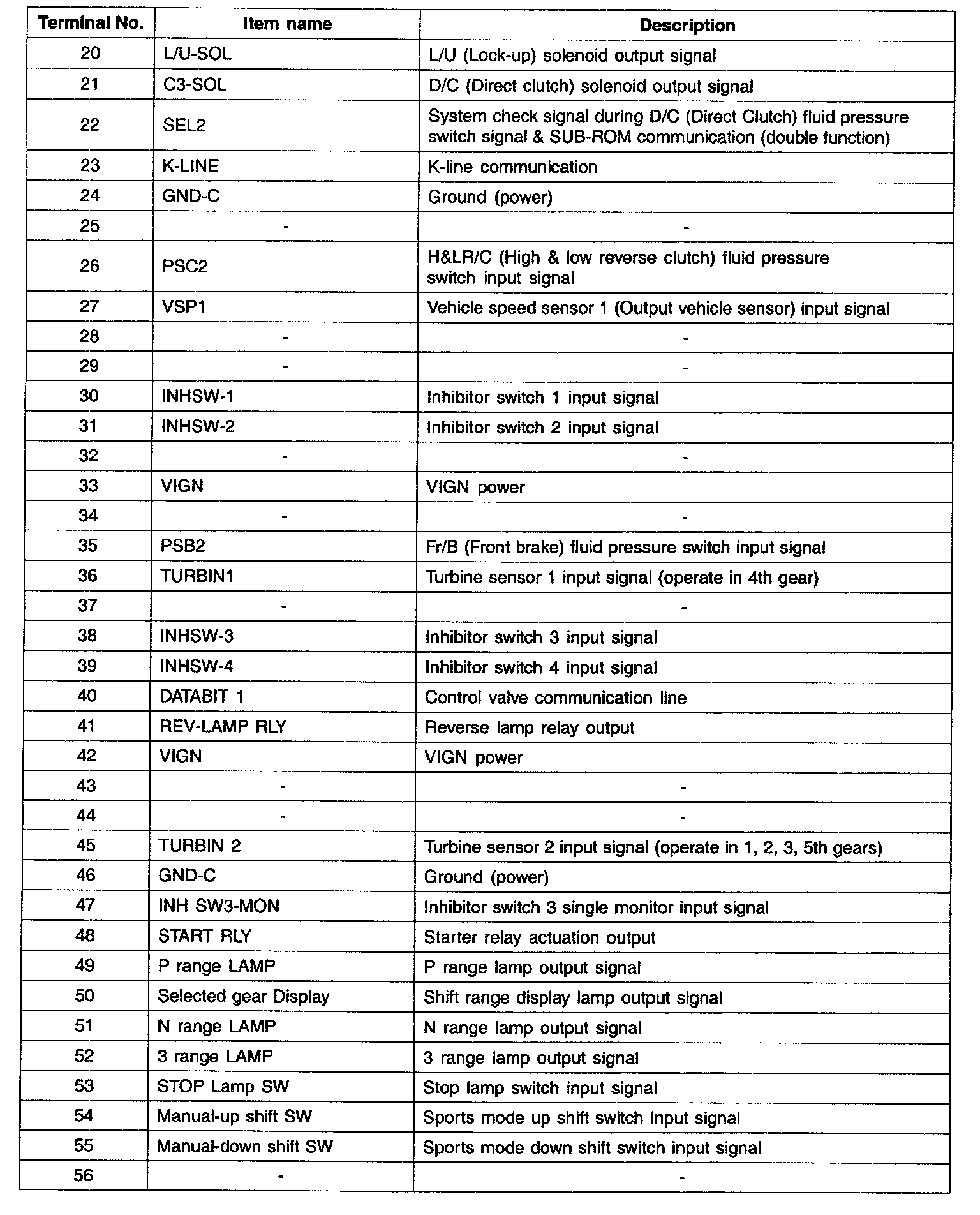 INPUT/OUTPUT TERMINAL VOLTAGE TABLE