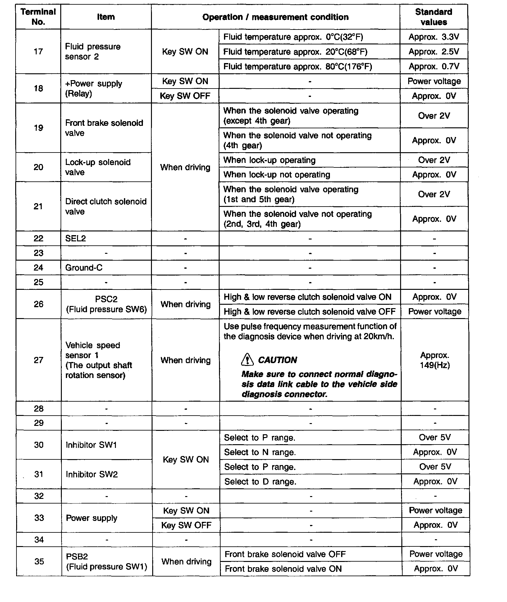 Pinout Values and Diagnostic Parameters