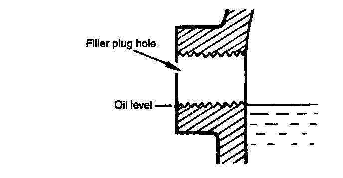 OIL INSPECTION AND REPLACEMENT1. Raise vehicle on hoist and remove the filler plug and check the oil level.