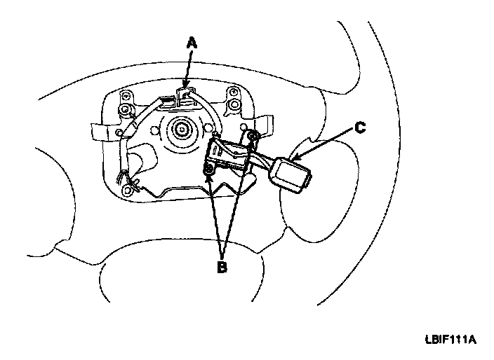 4. Loosen the two mounting screws(B), and remove the cruise remocon switch(C).