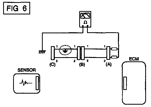 a. Disconnect connectors (A), (C) and measure for resistance between connector (A) and Chassis Ground as shown in [FIG. 6].