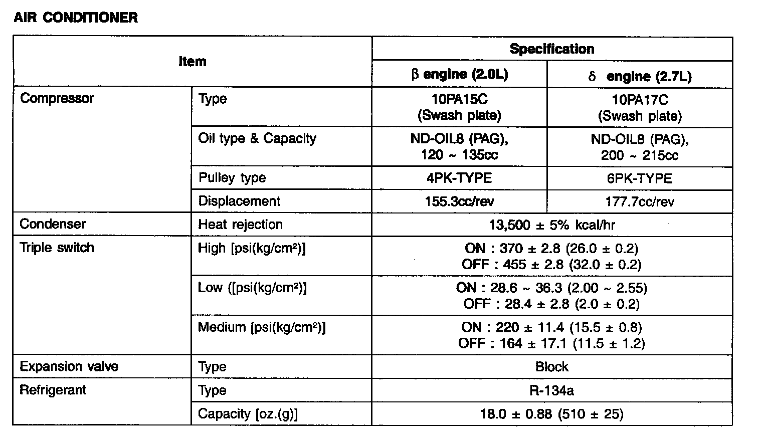 Specification - Air Conditioner: