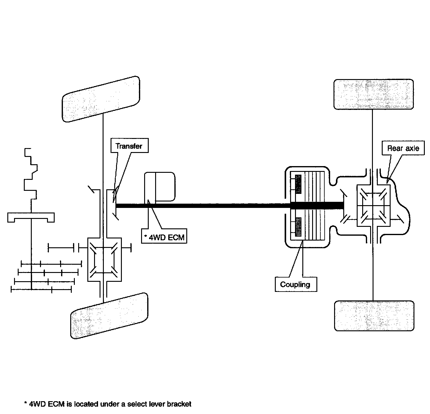 ^ Distributed the required driving force after 4WD ECU operates. EMC (Electric Magnetic Clutch) operates the primary clutch.
