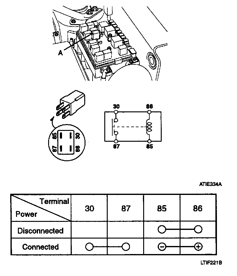 5. There should be no continuity between the No.87 and No.30 terminals when power is disconnected.