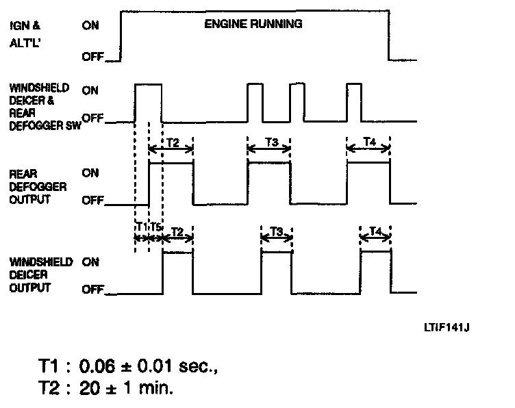WINDSHIELD GLASS DEICER TIMER INSPECTION1. Once ALT "L" is ON, if the defogger is switched ON, the defogger will stay ON for 20 minutes duration.