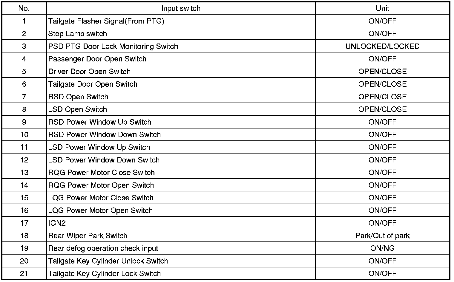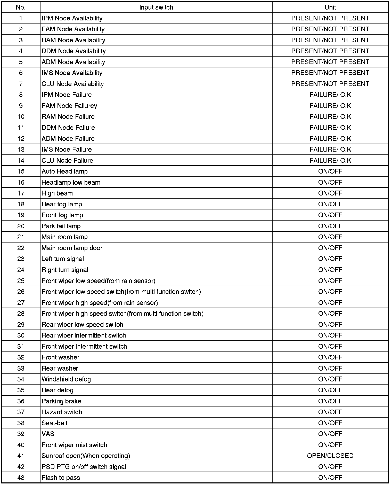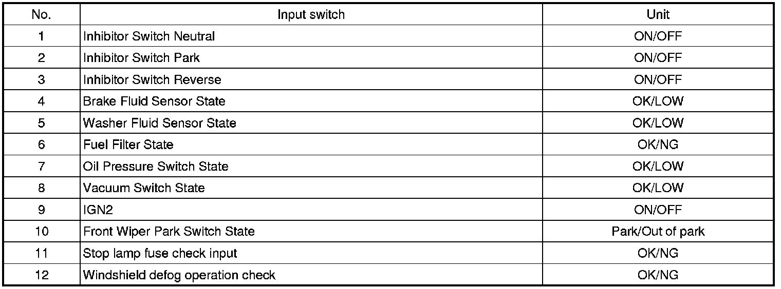 Pinout Values and Diagnostic Parameters