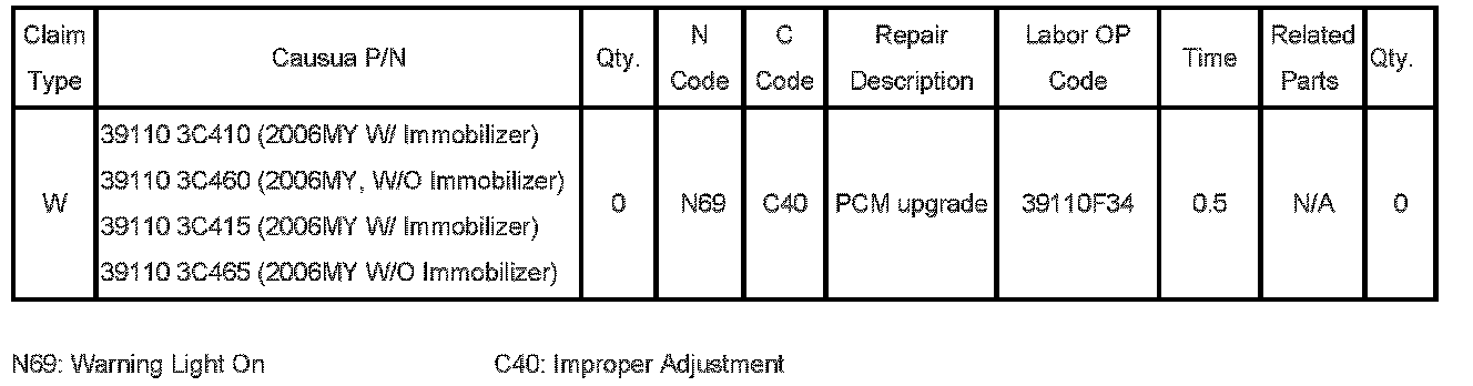 Some 2006 and 2007 MY Sedona (VQ) models may exhibit Malfunction Indicator Lamp (MIL) illumination with the following Diagnostic Trouble Codes (DTCs) stored in the Control Module (PCM: