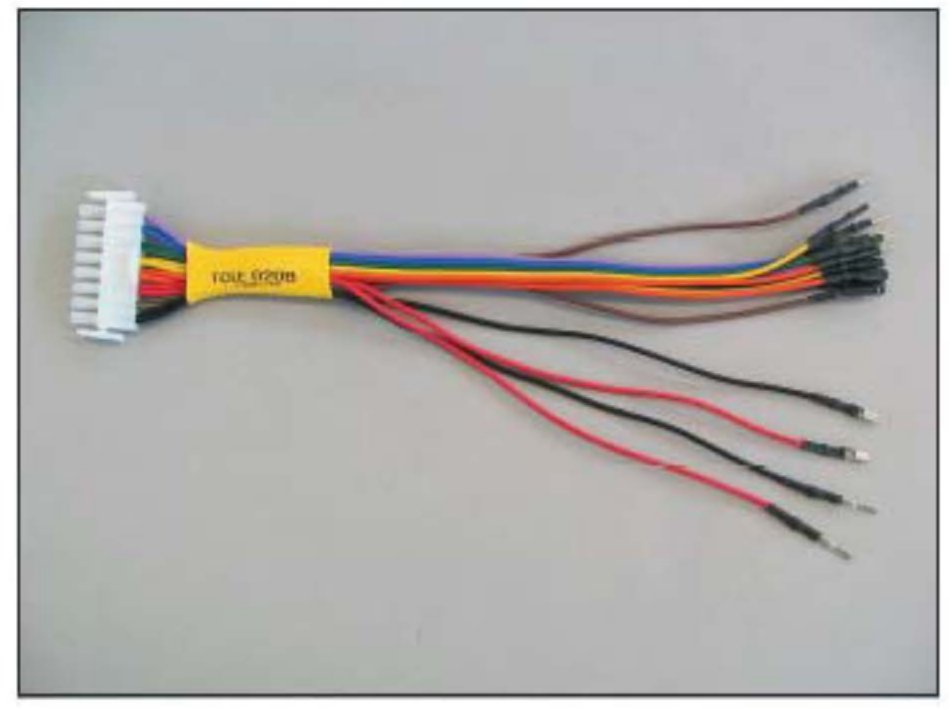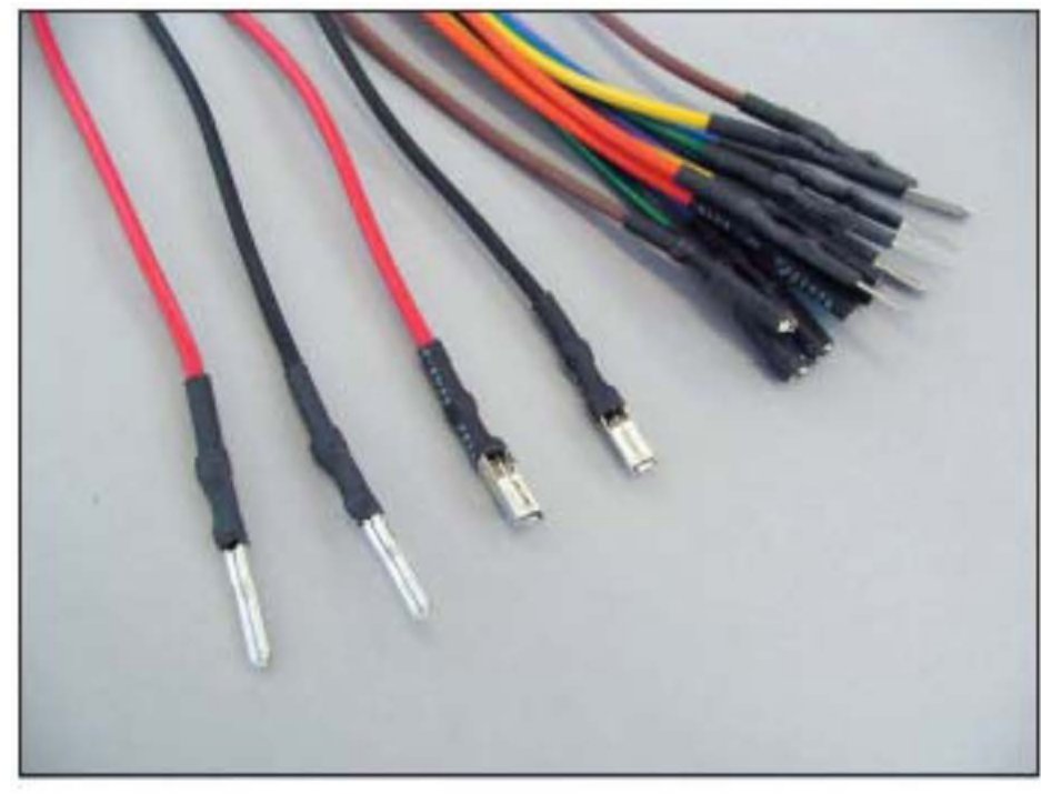 4. Using a sharp knife or razor blade, remove a portion of the insulation on the red and black leads of T-Connector TCIE-020B as shown in the photo.