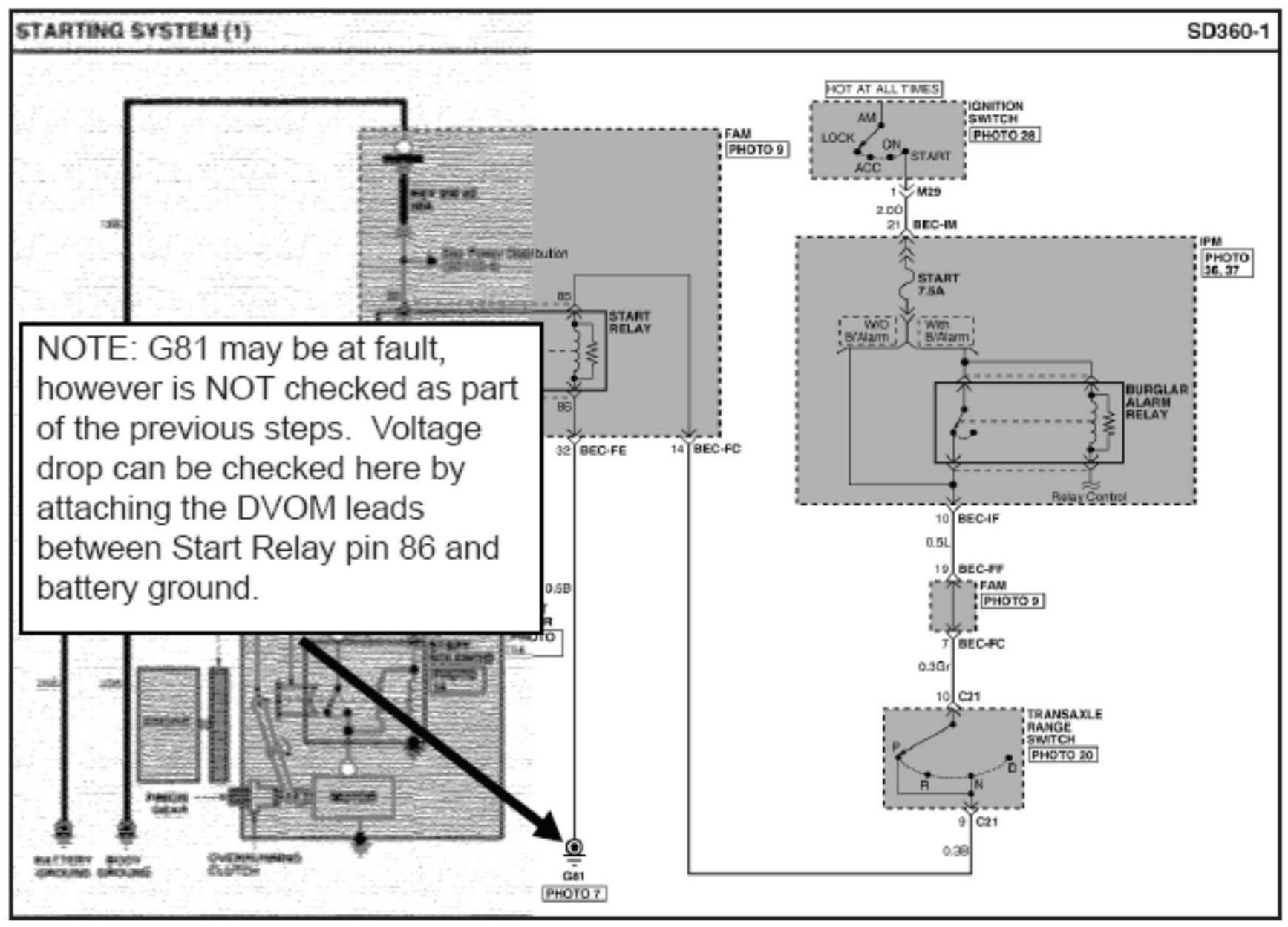 ^ Any connection in the pull-down side of the Start Relay circuit including those at the IPM itself