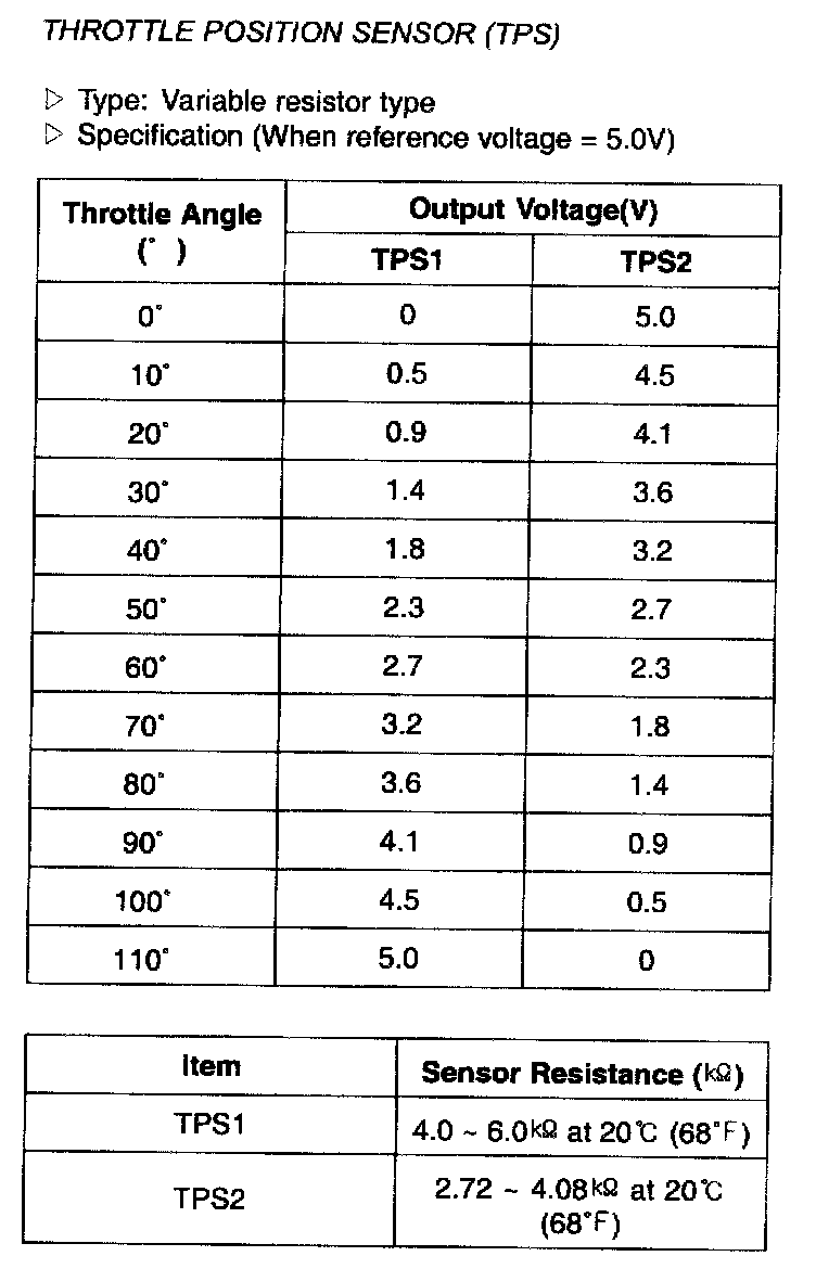 Throttle Position Sensor (TPS) - Specification: