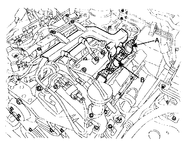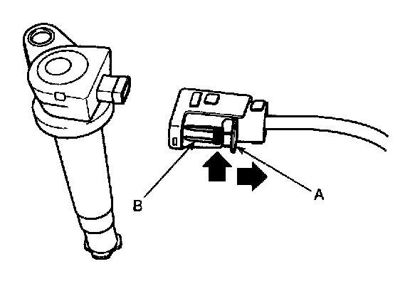 NOTE: When removing the ignition coil connector, pull the lock pin (A) and push the clip (B).