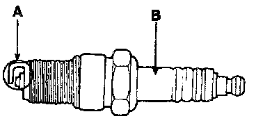 4. Inspect the electrodes (A) and ceramic insulator (B).