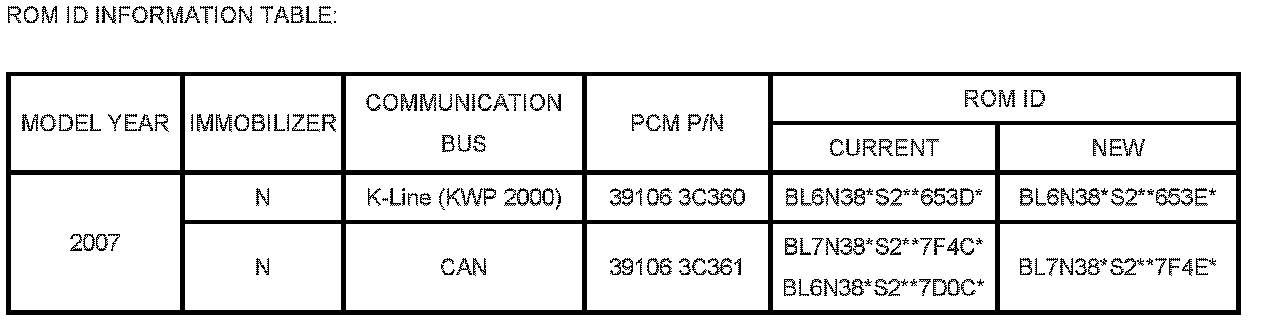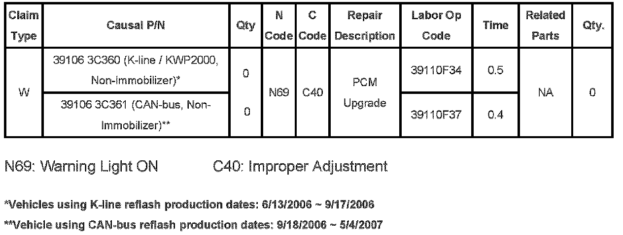 ^ Vehicles using K-line reflash production dates: 6/13/2006 - 9/17/2006