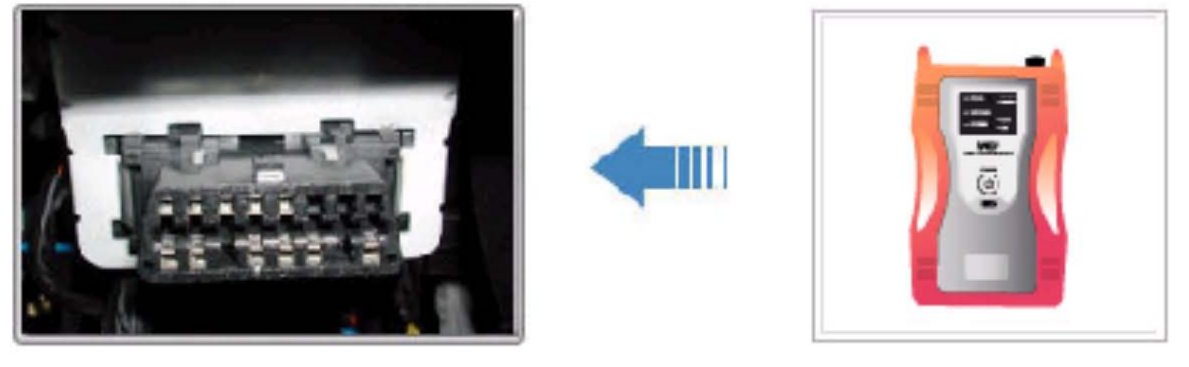 4. Connect the Main 16-pin DLC cable (GHDM - 241000) to the OBD-II connector, located under the driver's side of the instrument panel.