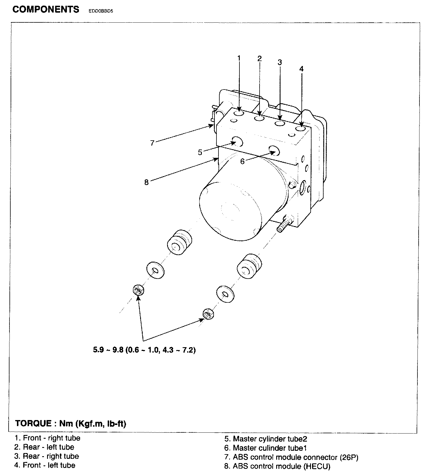 2. After installation, bleed the brake system. (Refer to ABS bleeding)