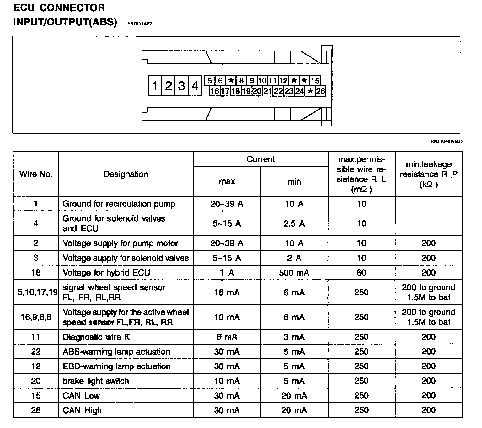 ECU Connector Input/Output (ABS):