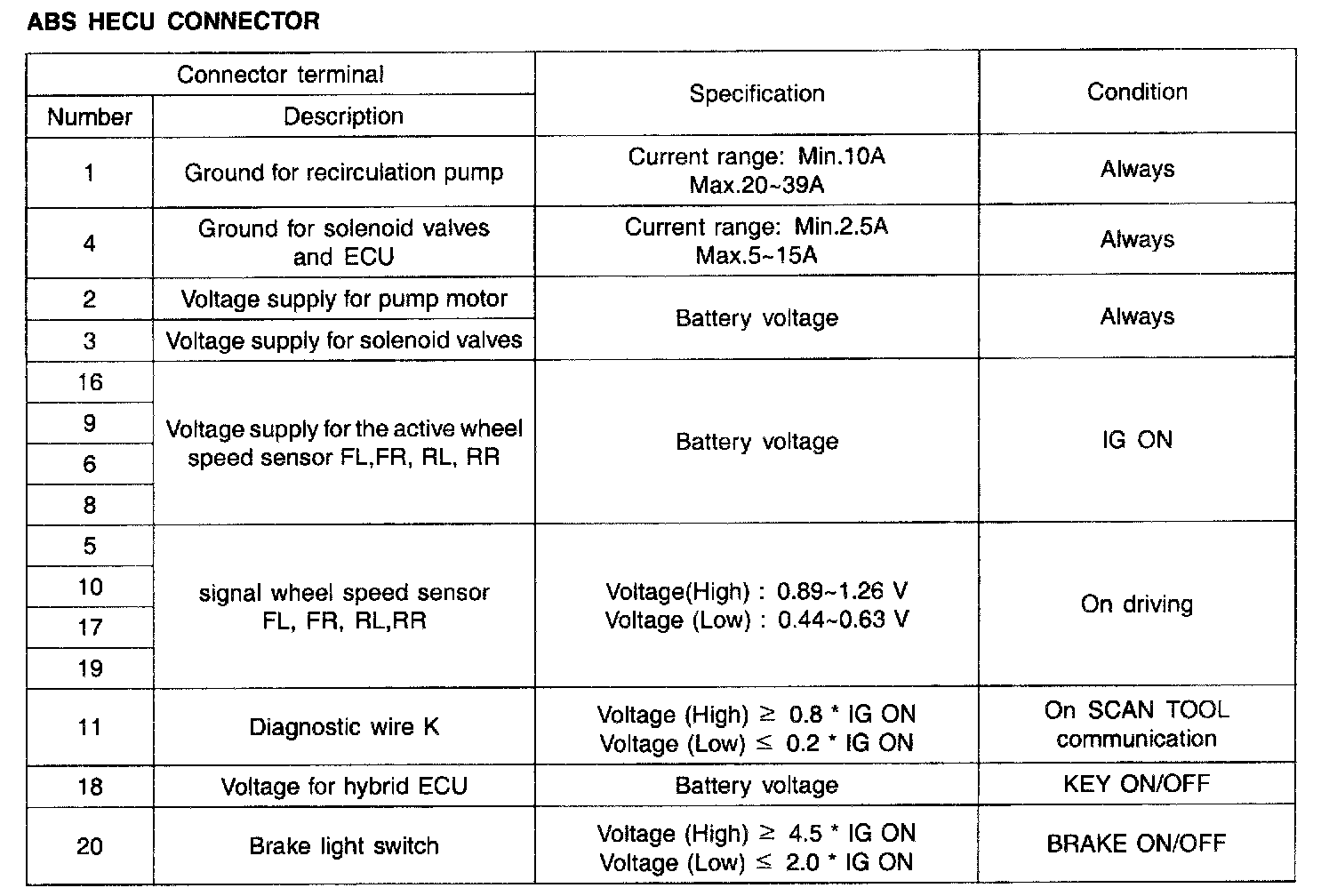 ECU CONNECTOR INPUT / OUTPUT (ABS)