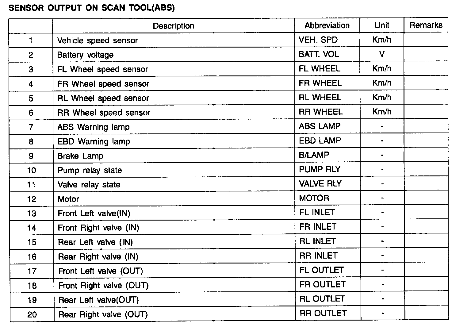 Sensor Output On Scan Tools (ABS):