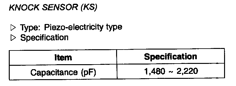 Knock Sensor (KS) - Specification: