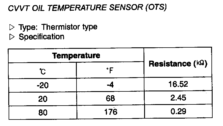 CVVT Oil Temperature Sensor (OTS) - Specification: