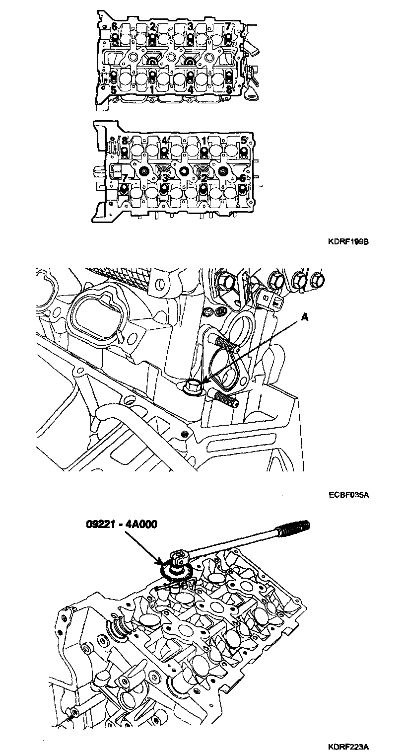 1) Do not apply engine oil on the threads and under the heads of the cylinder head bolts.
