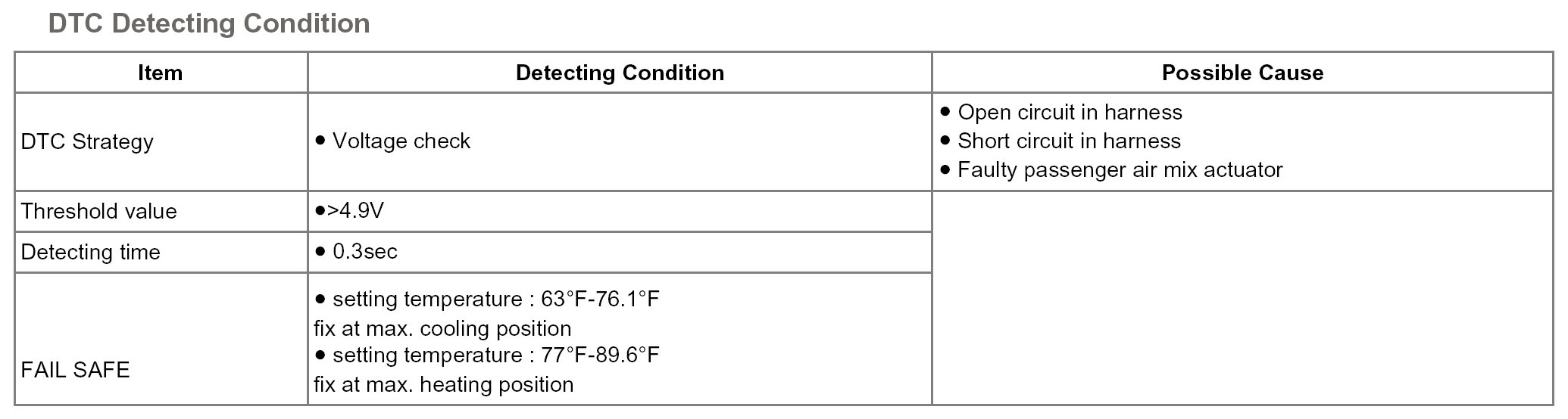 - Parameter of "PASSENGER AIR MIX D" will be fixed at d at 100% (or any value above 90%), or 0% (or any value below 10%), if there is any fault in passenger air mix actuator.