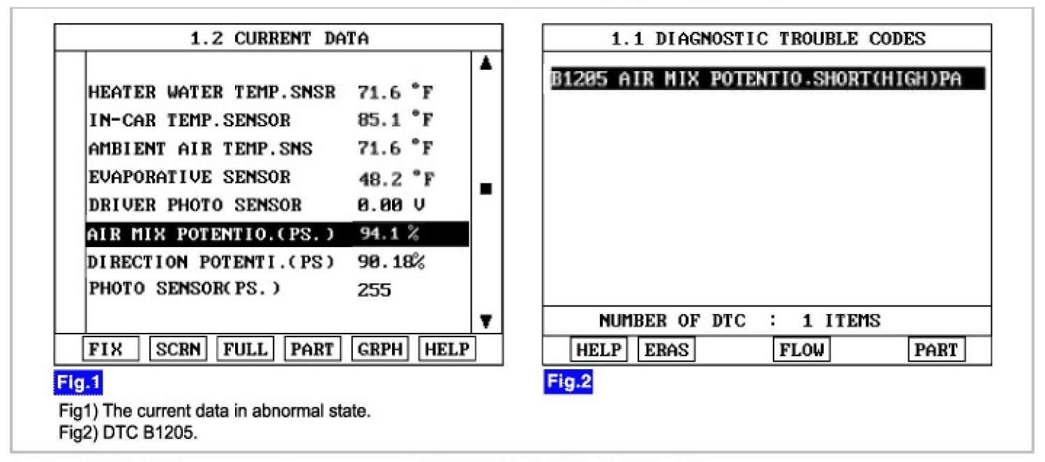 4. Are the DTC B1205 present and is parameter of "PASSENGER AIR MIX D" fixed?