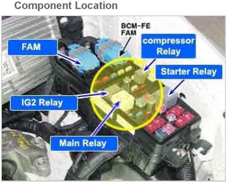 FAM is a component of BCM that consists of DDM, ADM, FAM, RAM, IMS and cluster module. Each component of BCM controls relative unit and share information by CAN communication line. FAM is abbreviation of Front Area Module. It is located in the engine room and controls wiper and all kinds of lamp (Head lamp, tail lamp, stop lamp, turn signal lamp etc.), Beside that, FAM performs diagnosis of system.