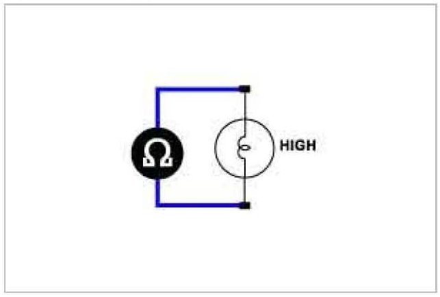 Specification : approx. 0.04 ohms (If light bulb fails, Infinity ohms is measured.)