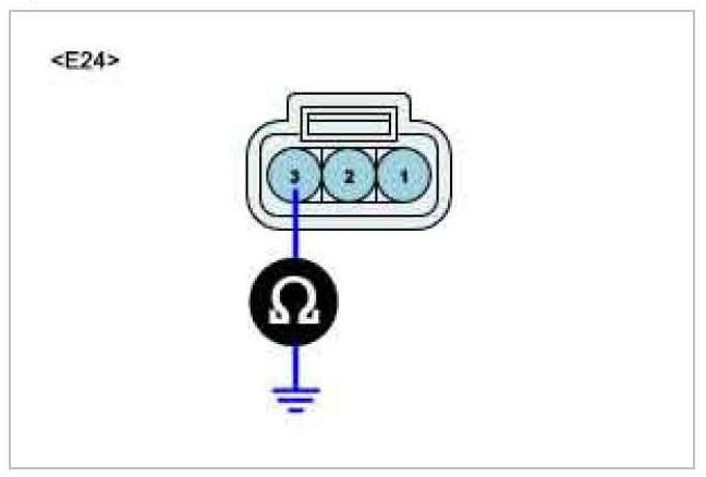 2. Measure the resistance between Left turn signal lamp ground circuit (E24-3) and chassis ground.