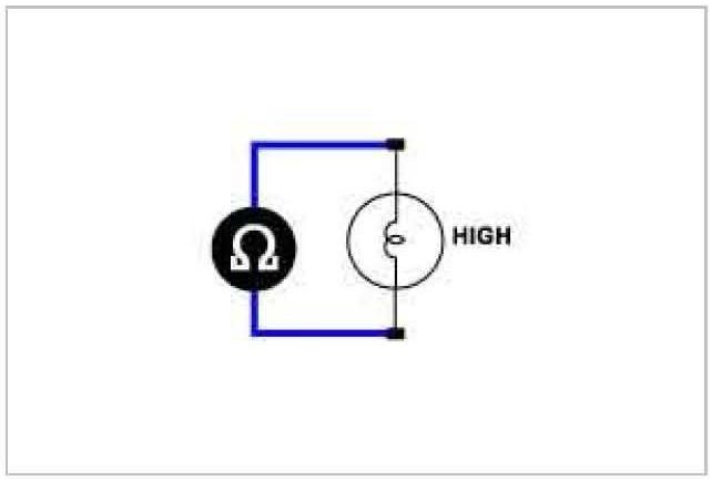 Specification : approx. 0.04 ohms (If light bulb fails, Infinity ohms is measured.)
