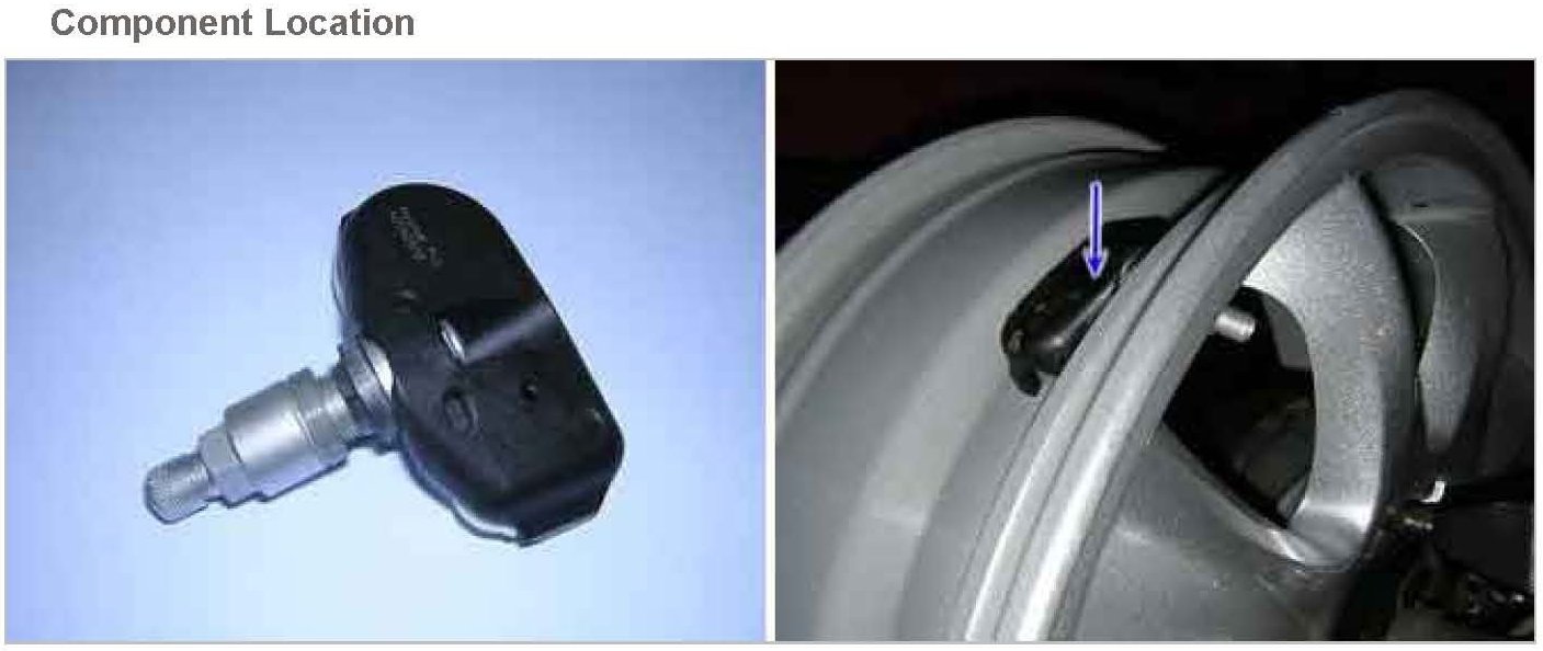 Each vehicle wheel is fitted with a Wheel Electronic (WE) sensor unit attached to the valve on the inside of the wheel. The WE unit is powered with a self-contained battery utilizing a high temperature rated CR (Manganese Dioxide Lithium) chemistry. The operating voltage range for the WE module is 2.2 V dc to 3.6 V dc, and the operating temperature range is -40 °F to 257 °F (-40 °C - 125 °C). The WE measures tire pressure, temperature, and acceleration periodically.