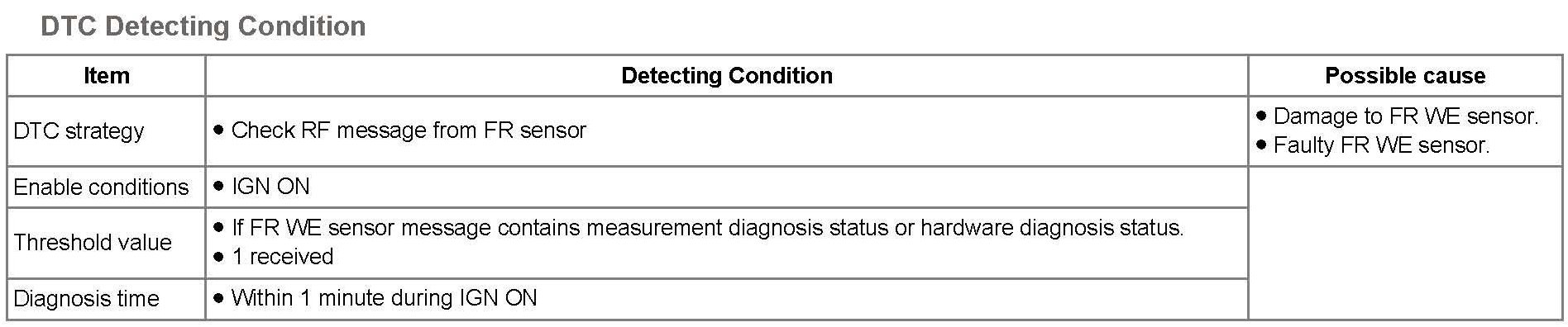 a. Replace Front Right WE sensor and register sensor ID with 'TPMS exciter'.