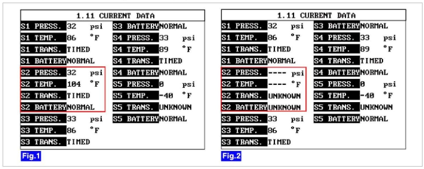 4. Monitor the parameters of 'Front Right WE sensor (S2)' on the 'TPMS exciter' or scantool.