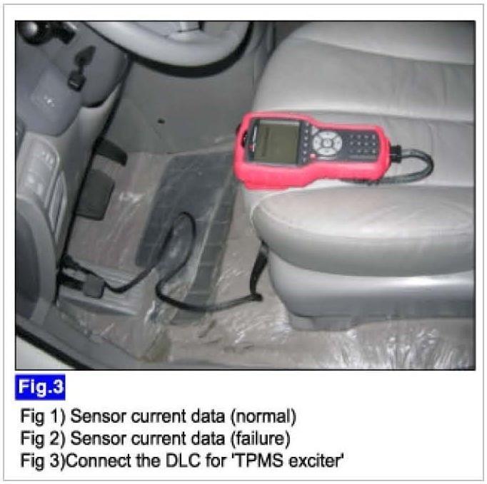 1. Connect 'TPMS exciter' or scantool to Data Link Connector (DLC).