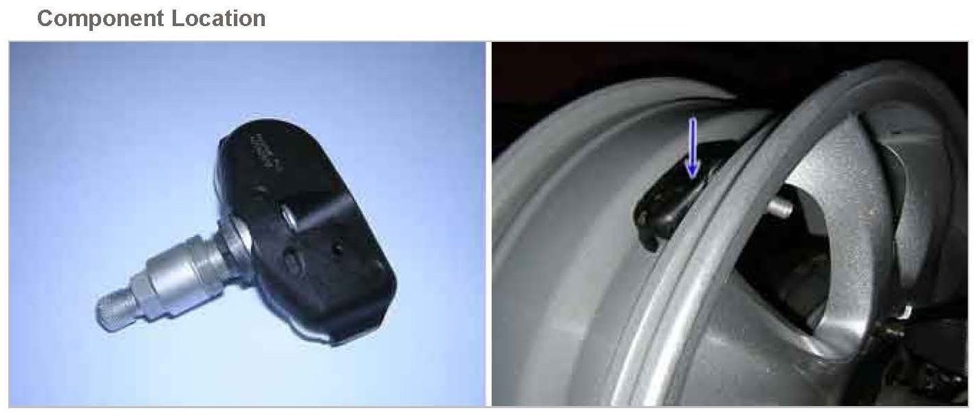 Each vehicle wheel is fitted with a Wheel Electronic (WE) sensor unit attached to the valve on the inside of the wheel. The WE unit is powered with a self-contained battery utilizing a high temperature rated CR (Manganese Dioxide Lithium) chemistry. The operating voltage range for the WE module is 2.2 V dc to 3.6 V dc, and the operating temperature range is -40 °F to 257 °F (-40 °C - 125 °C). The WE measures tire pressure, temperature, and acceleration periodically.