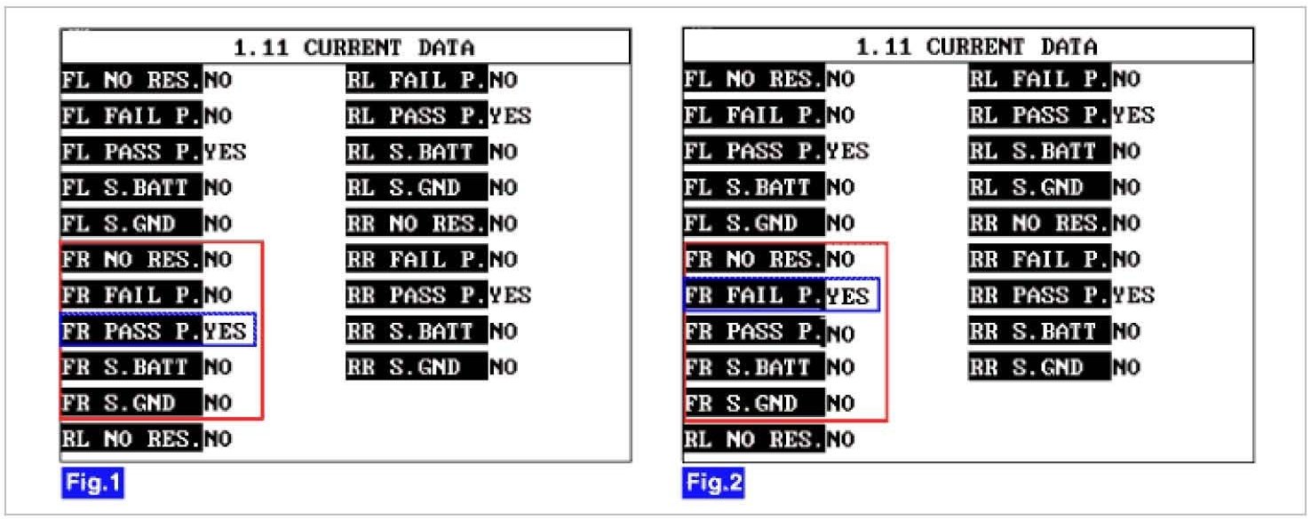 4. Monitor the parameters of 'Front Right LFI' on the 'TPMS exciter' or scantool.