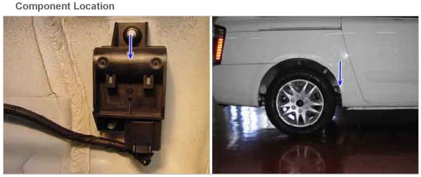 The LFI is located at each vehicle wheel house (F/L, F/R, R/L, R/R). Only HIGH-LINE systems are fitted with LFI units. An LFI unit is mounted in each wheel well of a vehicle to enable the Receiver unit to determine the vehicle position of each WE for which it has a stored ID code. Using a digital bi-directional serial CONTROL line to each LFI, the Receiver can activate an LFI to send out an LF message and trigger the WE sensor near its location to respond with an RF transmission. By activating the LFI units one at a time, the Receiver can automatically locate the vehicle position of each WE. For fault detection, the LFI will report back its 'operating properly' status to the Receiver via the CONTROL line.