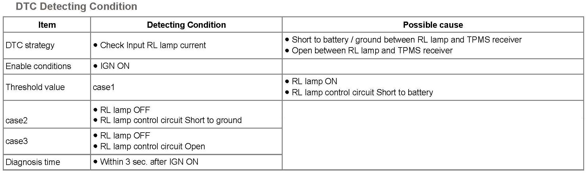 This DTC indicates that the Rear Left lamp control circuit short to battery when lamp is on. -OR- Rear Left lamp control circuit short to ground or open when lamp is off.
