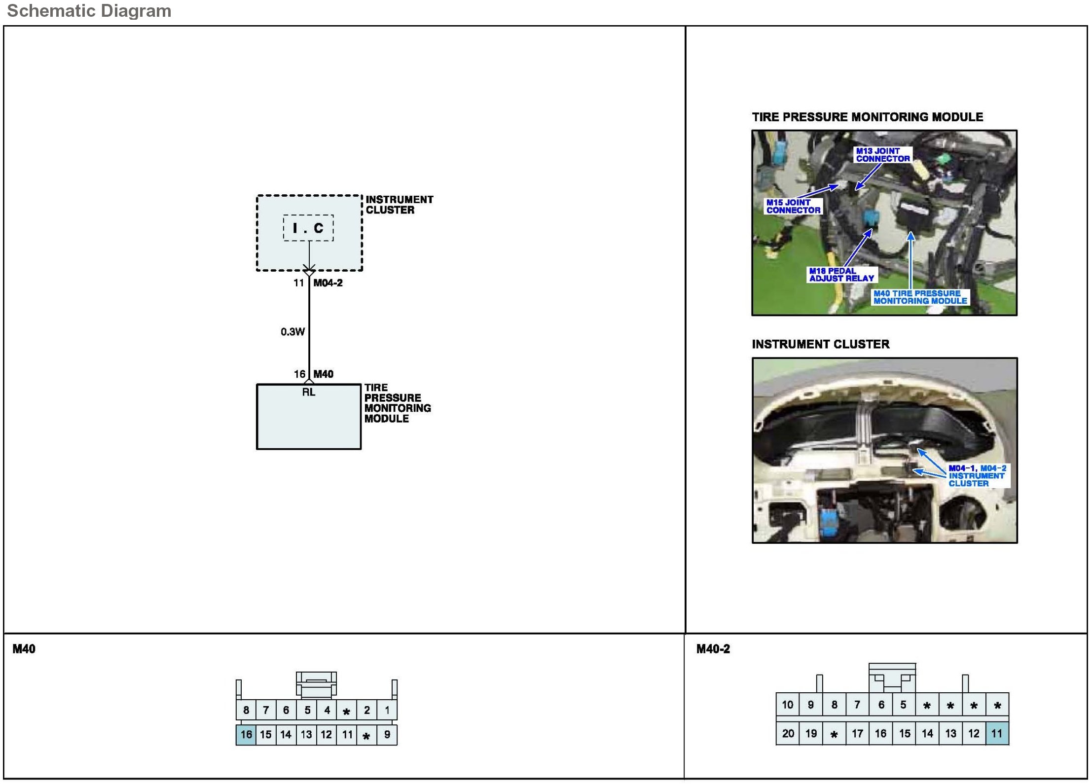 2. Disconnect instrument cluster connector and TPMS receiver connector.