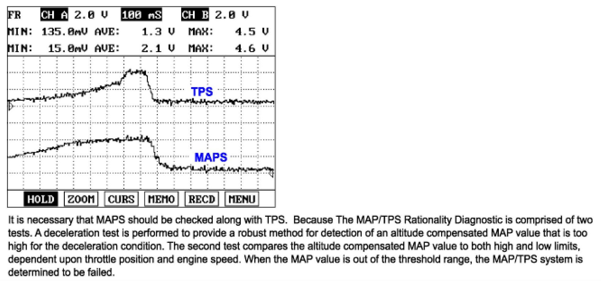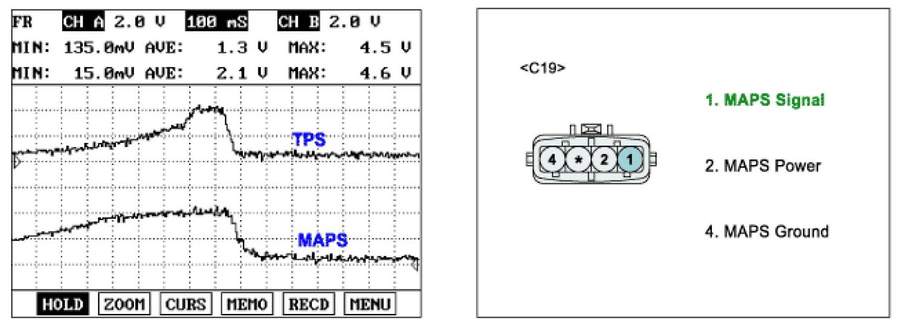 (2) Connect probe to MAPS and TPS to check signal waveform by using oscilloscope function.