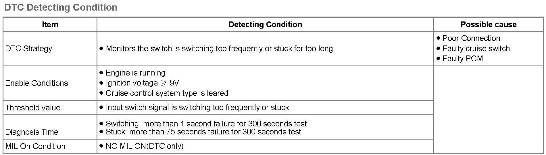 The cruise control system makes the vehicle drive at a fixed speed until a signal canceling this fixed speed is received. When the main switch is turned on, the battery voltage is applied to the PCM. When a signal from the control switch like Set or Resume switch while driving is input to the PCM, it controls the ETS motor to make a car go at a steady speed you want. Also, while the system is operating, "CRUISE" indicator lamp on cluster lights up.