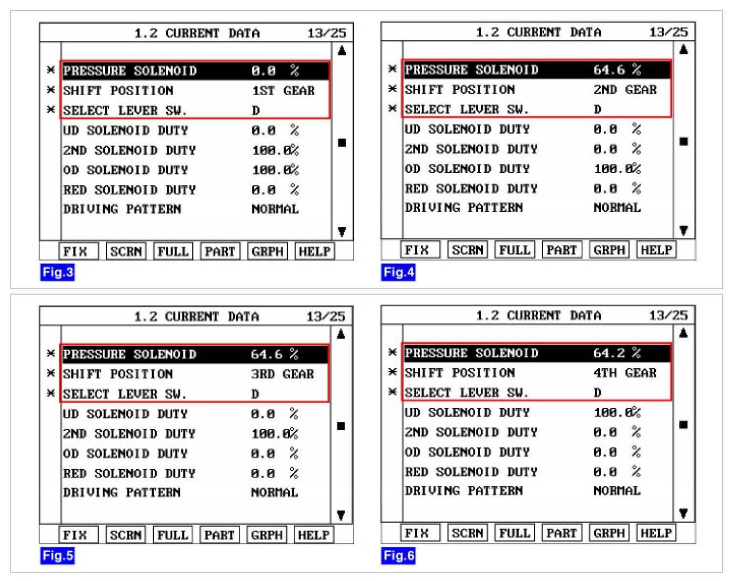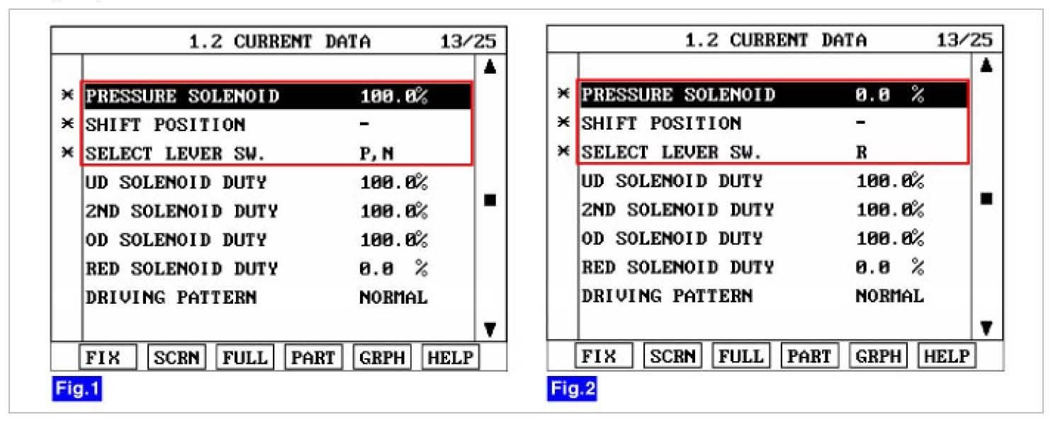 3. Monitor the "PRESS CONTROL SOL. VALVE" parameter on the scantool