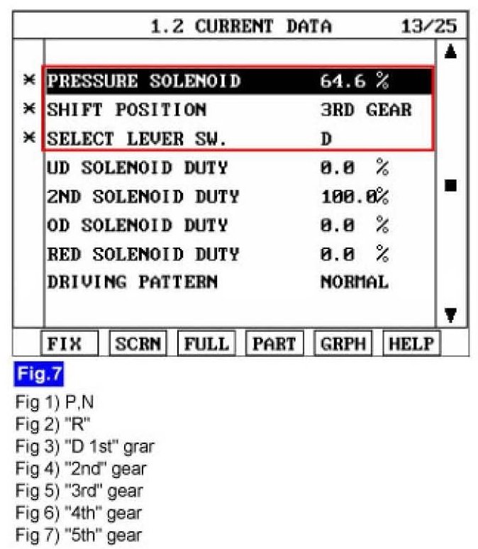 - Frequency : LR, 2ND, UD, OD, RED : 61.27 Hz (at the ATF temp. -20 °C above)
