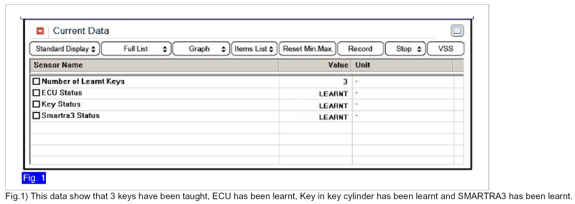 2. Monitor the "ECM, Key and Smartra Status" Parameter on the Scantool.